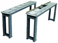 Banc à rouleaux de chargement/déchargement pour scies à ruban à hauteur réglable, constitué d'éléments modulaires de 2 mètres, chacun avec 7 rouleaux en acier zingué, largeur 290 mm ou 390 mm.